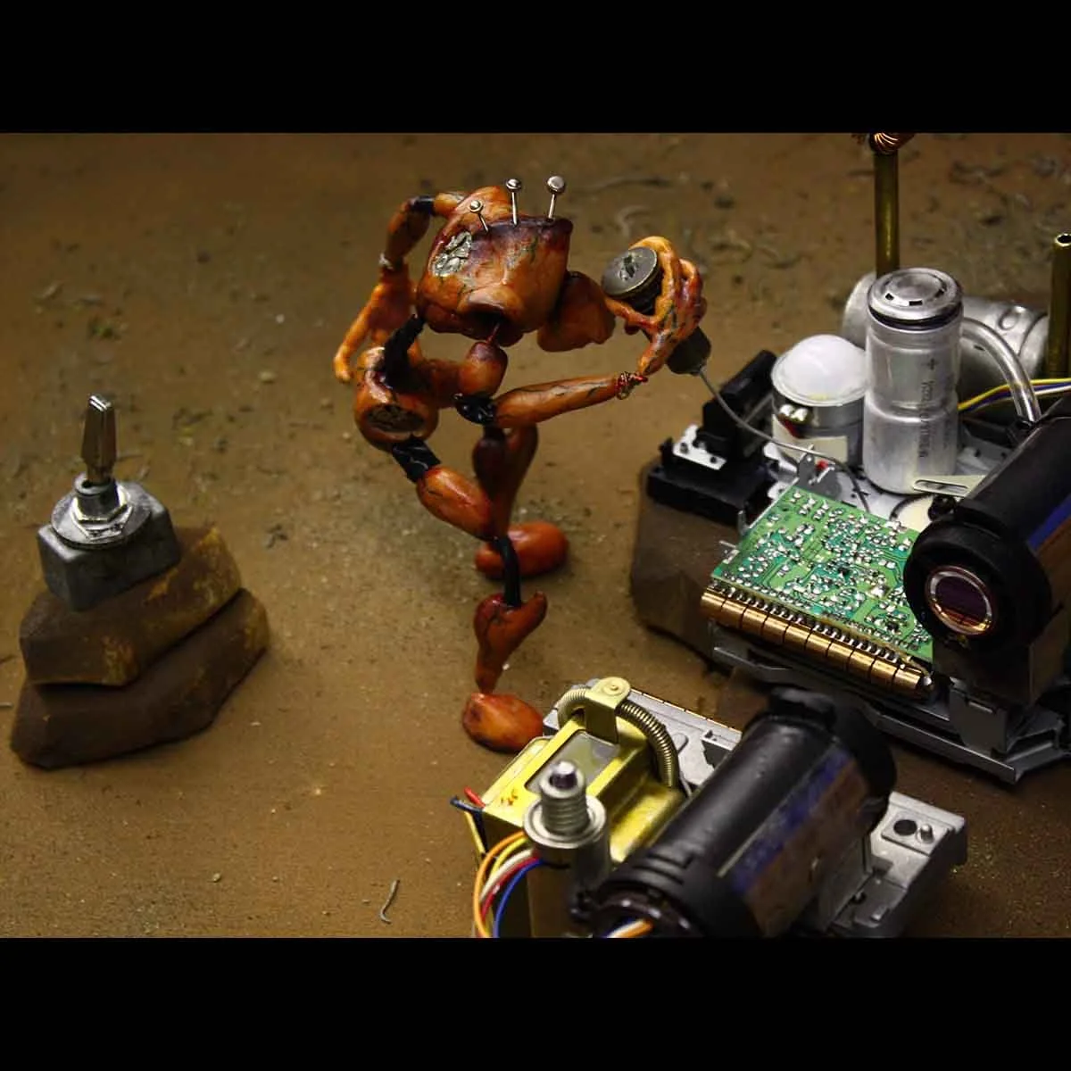 In 2009, I was connected to a music video director in a tight 2 week deadline. The band footage was already produced and the director had a vision to splice the footage with roughly 3 mins of an animated narrative created using stop-motion animation. I joined the project as a compositor. While visiting the set I quickly learned there were no animators, puppet fabricators, or set designers. Only a very ambitious director without animation experience and a broken leg, which is not an ideal situation for a stop-motion animation production. 2 puppets had been sculpted but not completed. At the time, in desperate search of work and living in my car, I offered to help in other areas as well during which I stayed fed and given a couch to sleep on.